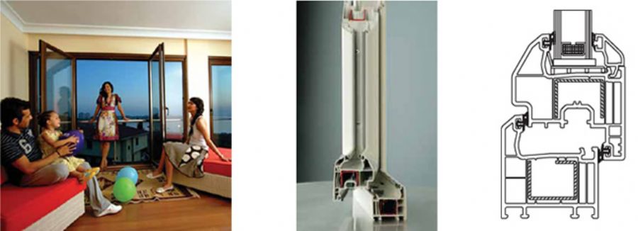 Carina Serisindeki tüm profiller, Avrupa standartlarında, çevreye zarar vermeyen, geri dönüşümlü çevre dostu KALSİYUM – ÇİNKO stabilizan içermektedir. Profil hammaddesi, UV ışınlarına daha uzun süreli dayanıklılık sağlar. Ana profil genişliği 60 mm profiller olup 4 odacıklı yapıya sahiptir. Bu özellikleri ile her türlü iklim koşulunda yüksek izolasyon sağlar. İç ve dış contalı Carina Serisi, çift kanat çift açılım özelliğiyle, geniş pencere ve kapı açıklıkları için en iyi çözümdür. Beyaz profil TPE gri conta, lamine profil lamine rengine uygun olarak TPE siyah veya gri contalıdır. Yalıtım, içten ve dıştan iki conta ile sağlanmıştır. Cam çıtaları düz yada dekoratif görünümde olup tek tırnaklıdır. Çıta contaları beyaz profilde kendinden PCE gri conta, lamine profillerde lamine rengine uygun olarak kendinden PCE gri veya PCE siyah contalıdır. Kullanılacak cam kalınlığı 4 mm, 20 mm, 24 mm ve 30 mm dir. Ayrıca isteğe bağlı 12mm, 32mm ve 36mm cam kullanımına olanak sağlar. İçe ve dışa açılan, eşikli eşiksiz kapı uygulamaları; kendinden damlalıklı kanat profili ve gerek kapı gerekse pencerelerde kaynaksız, yekpare kemer seçeneği ile benzerlerinden kolaylıkla ayrılır. Özel olarak tasarlanmış Pvc ve Alüminyum sineklik seçenekleri uygulanabilir.